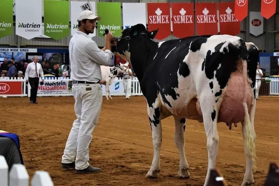 Later on, his showing and pedigree cattle knowledge, expanded with a stint at Okawa Holsteins (Tim & Jo Barclay and family) and after that, an internship at Luck-E Holsteins (Matt & Joe Engel and family) in Hampshire, Illinois, USA. Both of these jobs also earned him several embryos that have made their way into the current herd.
